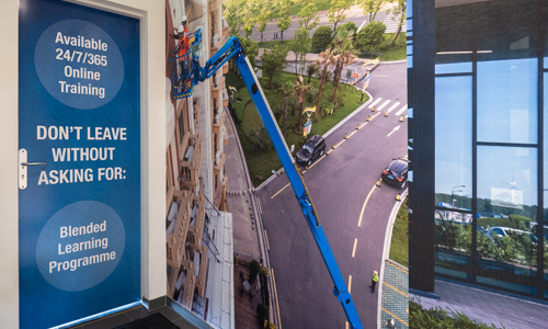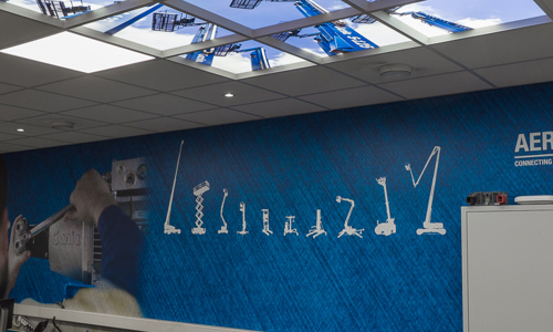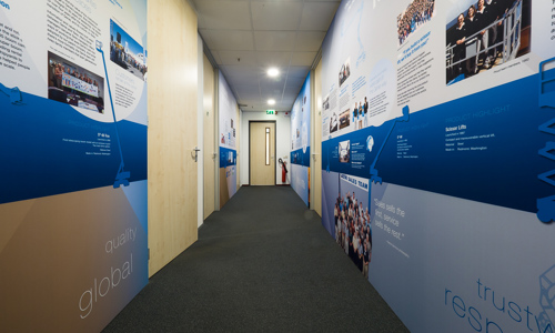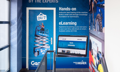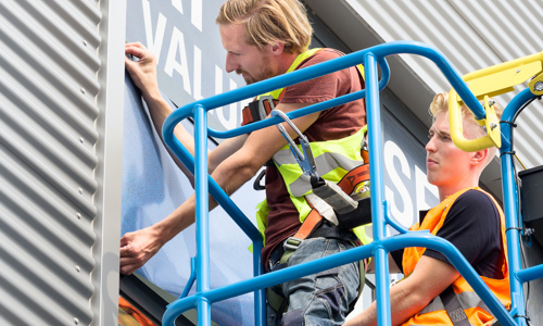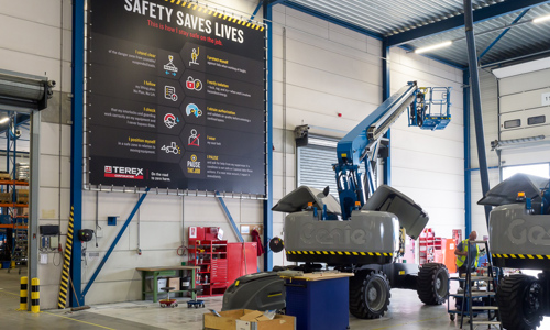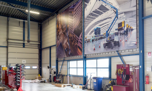 Samen met Genie bedachten we daarvoor een oplossing in de vorm van indrukwekkende grootformaat prints. Met een combinatie van XXL foto’s, veiligheidsinstructies en andere afbeeldingen werden de kantoren, werkplaatsen en magazijnen aangekleed.