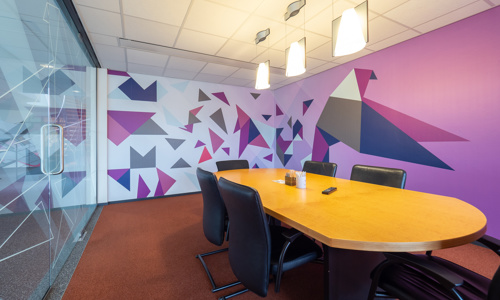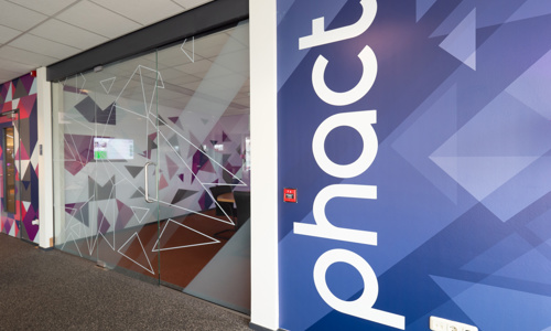 Als innovatieve onderneming hecht Phact veel waarde aan een werkplek waar medewerkers zich prettig voelen. De aankleding van het interieur is daarbij geen ondergeschoven kindje. Toen Phact dan ook eigenaar werd van het gehele bedrijfspand, werd na een kennismaking met JEU besloten om het interieur te voorzien van aankleding met prints en raamfolies met een design dat past bij de organisatie.