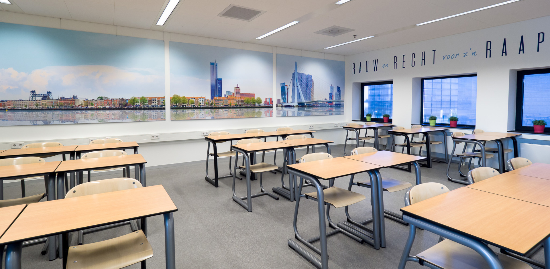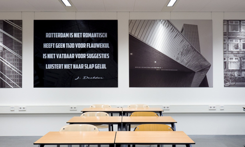 Om in de klaslokalen een inspirerende leeromgeving te creƫren, hebben we de muren aangekleed met aansprekend en toepasselijk design. In overleg met STC is gekozen voor thematische ontwerpen, uitgevoerd op verschillende materialen en afgedrukt met behulp van diverse printtechnieken.