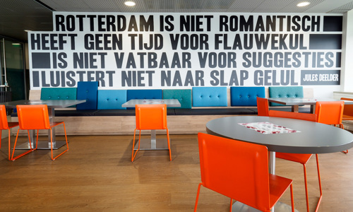 Ook de kantoor- en vergaderruimtes zijn voorzien van sfeerbeelden, die duidelijk laten zien waar het bij de STC-Group om draait. In deze omgeving voelen zowel de leerlingen als de docenten en de medewerkers zich echt op hun plek.
