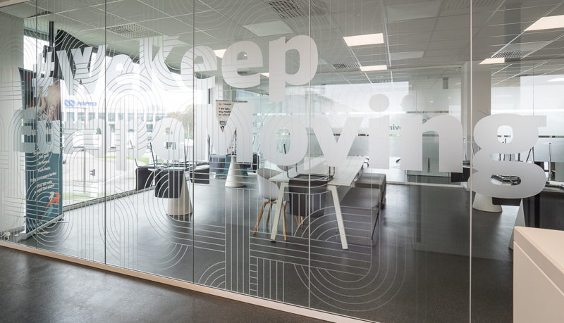Raamfolie is veel meer dan privacy: het is een canvas voor branding. Denk aan logo’s, patronen of motieven in jouw stijl. JEU ontwerpt en plaatst raamfolies die jouw internal branding kantoor versterken, tot in de kleinste details.