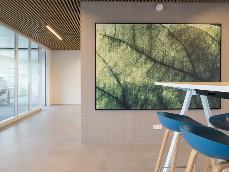Kantoor inrichten met oog voor akoestiek? JEU verwerkt geluidsabsorberende materialen achter visuals en in textielframes. Zo verbeteren we de akoestiek zonder concessies aan design. Rust, focus en prettig samenwerken gaan hand in hand in een inspirerend kantoorinterieur.