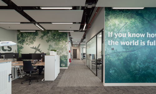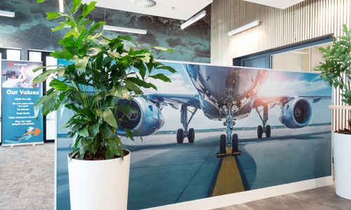 DB Schenker hecht veel waarde aan een inspirerende werkomgeving voor haar medewerkers, ook om daarmee de werkplek aantrekkelijk te maken voor nieuwe talenten. Met de aankleding wordt een plezierige werkbeleving voor de medewerkers gecreëerd. In de designs komen de herkenbare branding van DB Schenker en de thema’s logistiek, luchtvaart en duurzaamheid overal terug. Ook is er gebruik gemaakt van raamfolies, voor zowel privacy als decoratieve doeleinden.